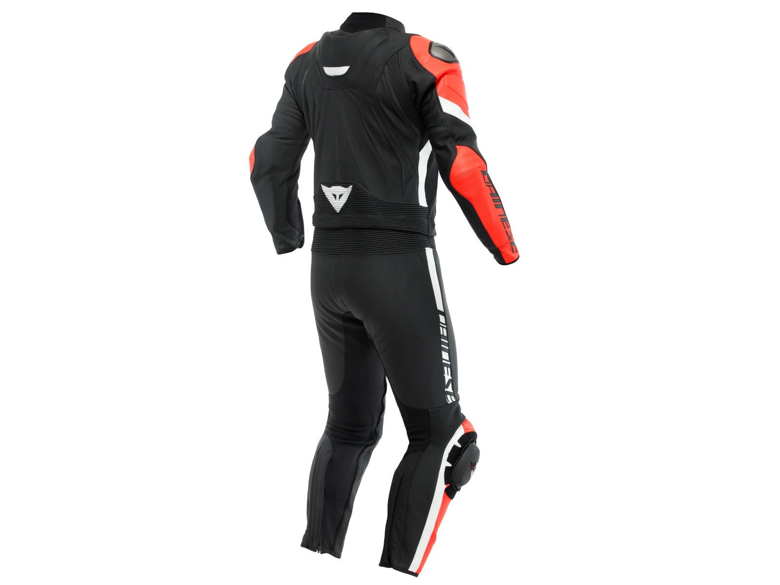 Zweiteiliger Motorradanzug Dainese Avro 4 aus edlem Tutu-Rindsleder, bestehend aus einer Jacke und einer Hose, die durch einen bequemen und widerstandsfähigen Reißverschluss rund um die gesamte Taille verbunden sind. Optimiert für das Fahren auf der Straße, geeignet für alle Geländearten.