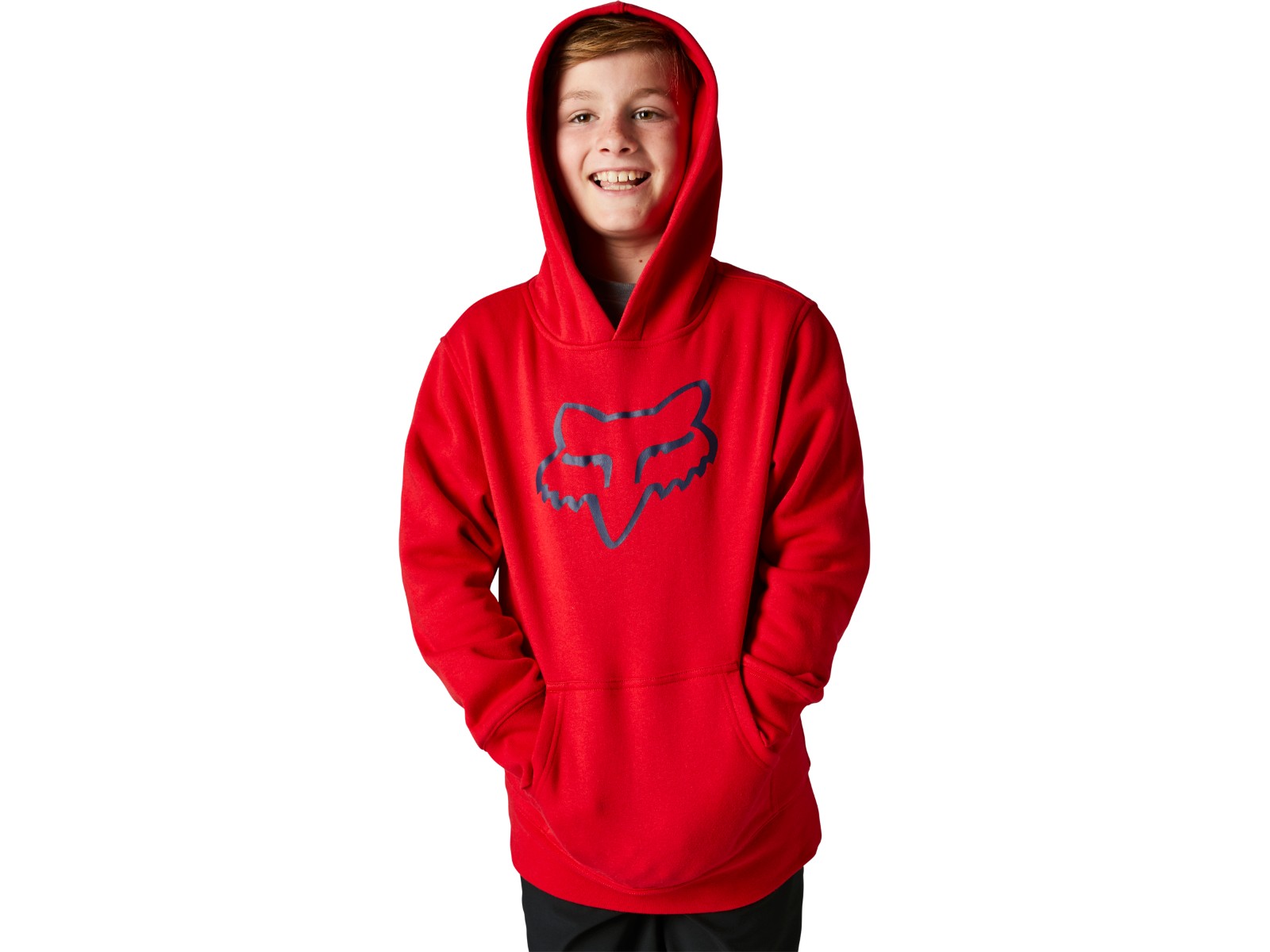 Kinder-Kapuzenpullover Legacy mit dem legendären Fox Head-Logo und innen flauschigen Fleece.