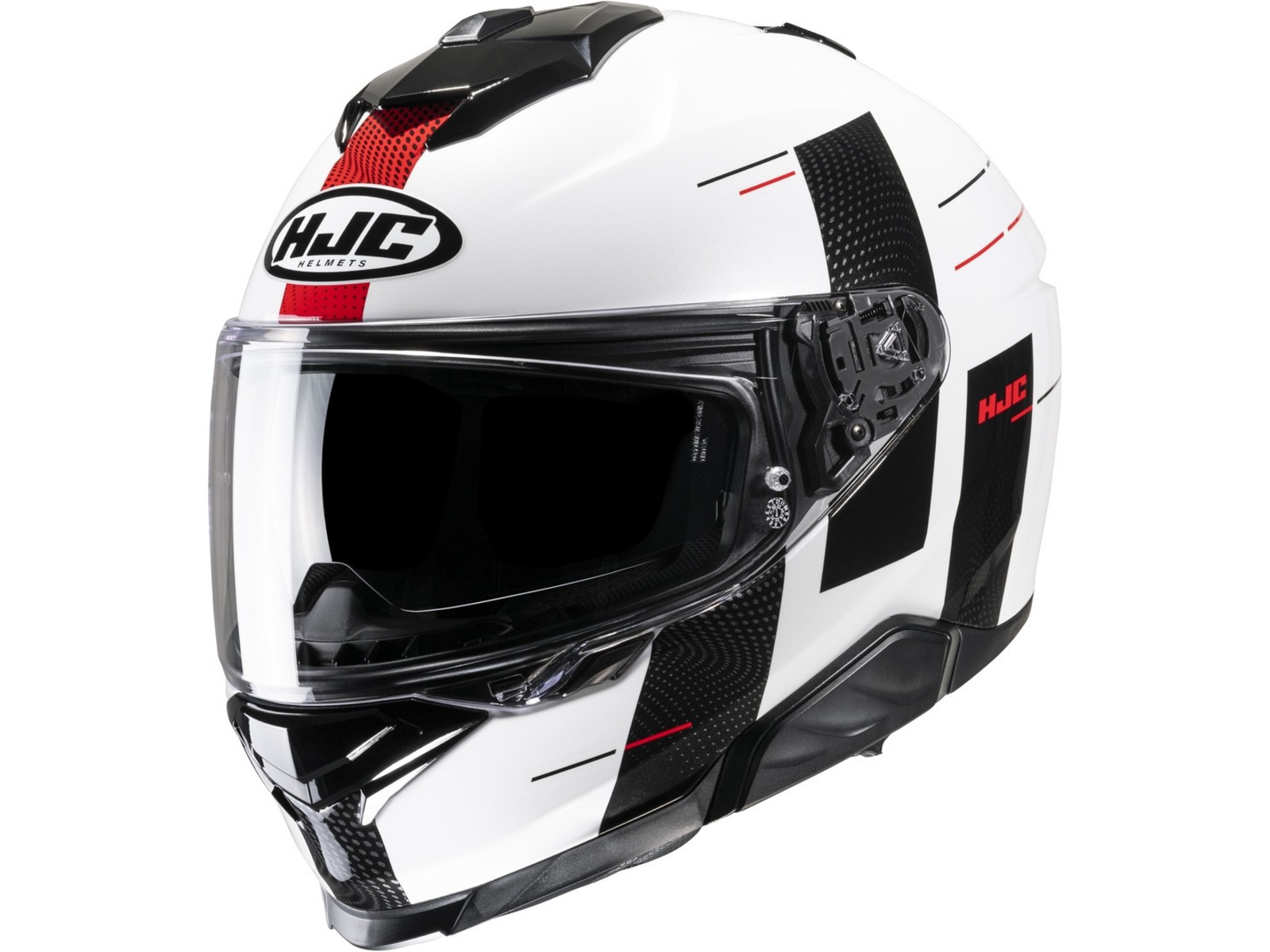 Der i71 setzt mit seinem neuen, schlanken Schalendesign neue Maßstäbe für ein Sport-Touring-Modell. Der Helm aus fortschrittlichem Polycarbonat hat jetzt 3 Außenschalen und 6 verfügbare Größen, um Gewicht und Komfort für den Fahrer zu optimieren. Die neu angeordnete obere Belüftungsöffnung und die vergrößerte Kinnbelüftungsöffnung ermöglichen eine verbesserte Luftzufuhr und Belüftung. Ebenfalls neu beim i71 sind das Visier und die Sonnenblende. Das HJ-38 Pinlock-Visier ist mit einem neuen Druck-Schiebe-Verschlusssystem ausgestattet, das für mehr Sicherheit sorgt, dennoch auch mit Handschuhen leicht zu bedienen ist. Die neue Sonnenblende (HJ-V12) bietet dem Fahrer die Möglichkeit, die Sonnenblende in 3 Positionen nach vorne zu verstellen (bis zu 10 mm), um einen idealen Sonnenblendschutz zu gewährleisten. Der i71 ist auch mit den Smart HJC Bluetooth-Systemen der zweiten Generation kompatibel.