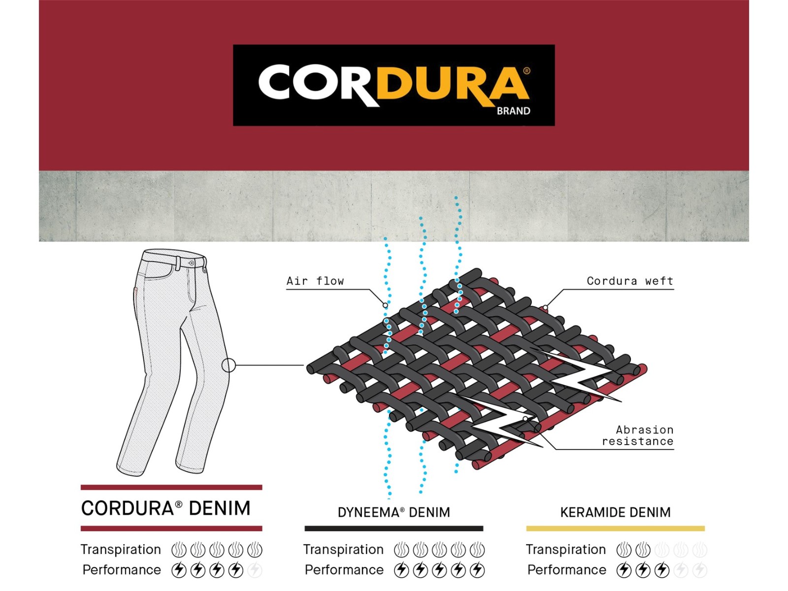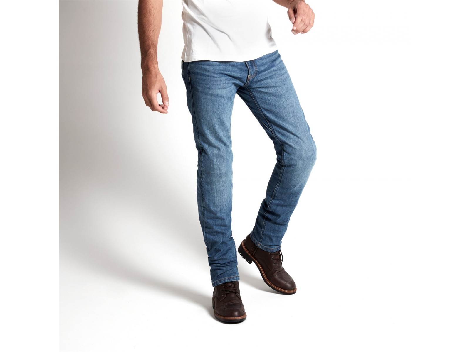Zertifizierte Motorradjeans, gefertigt aus einem Cordura®/Denim Mischgewebe. Knieprotektoren nach EN 1621-1:2012 sind in der Jeans vorhanden und lassen sich leicht entnehmen. Dank des sehr widerstandfähigen Mischgewebes ist die J-Tracker Schutzklasse A nach prEN 17092:2017 zertifiziert.